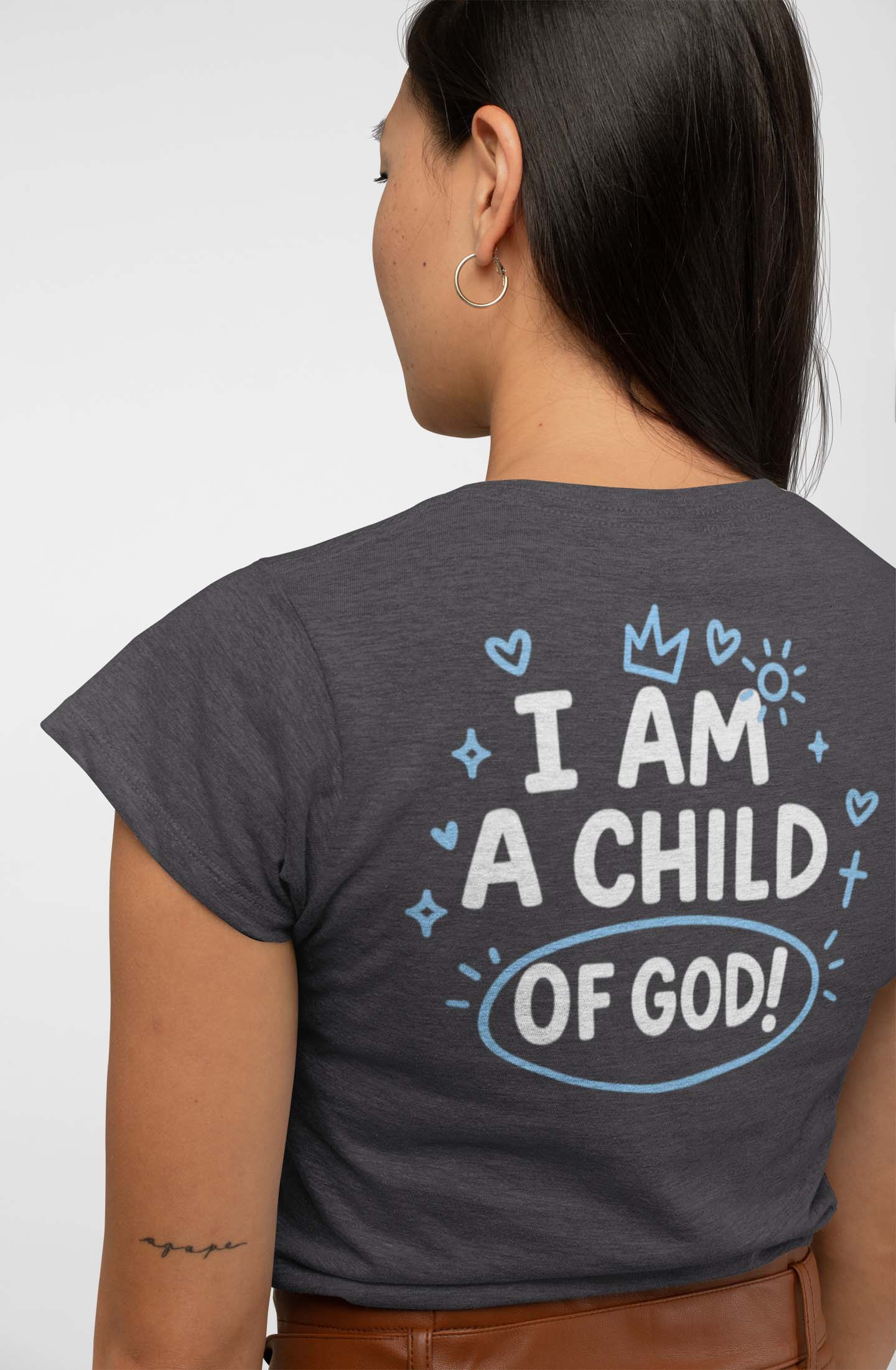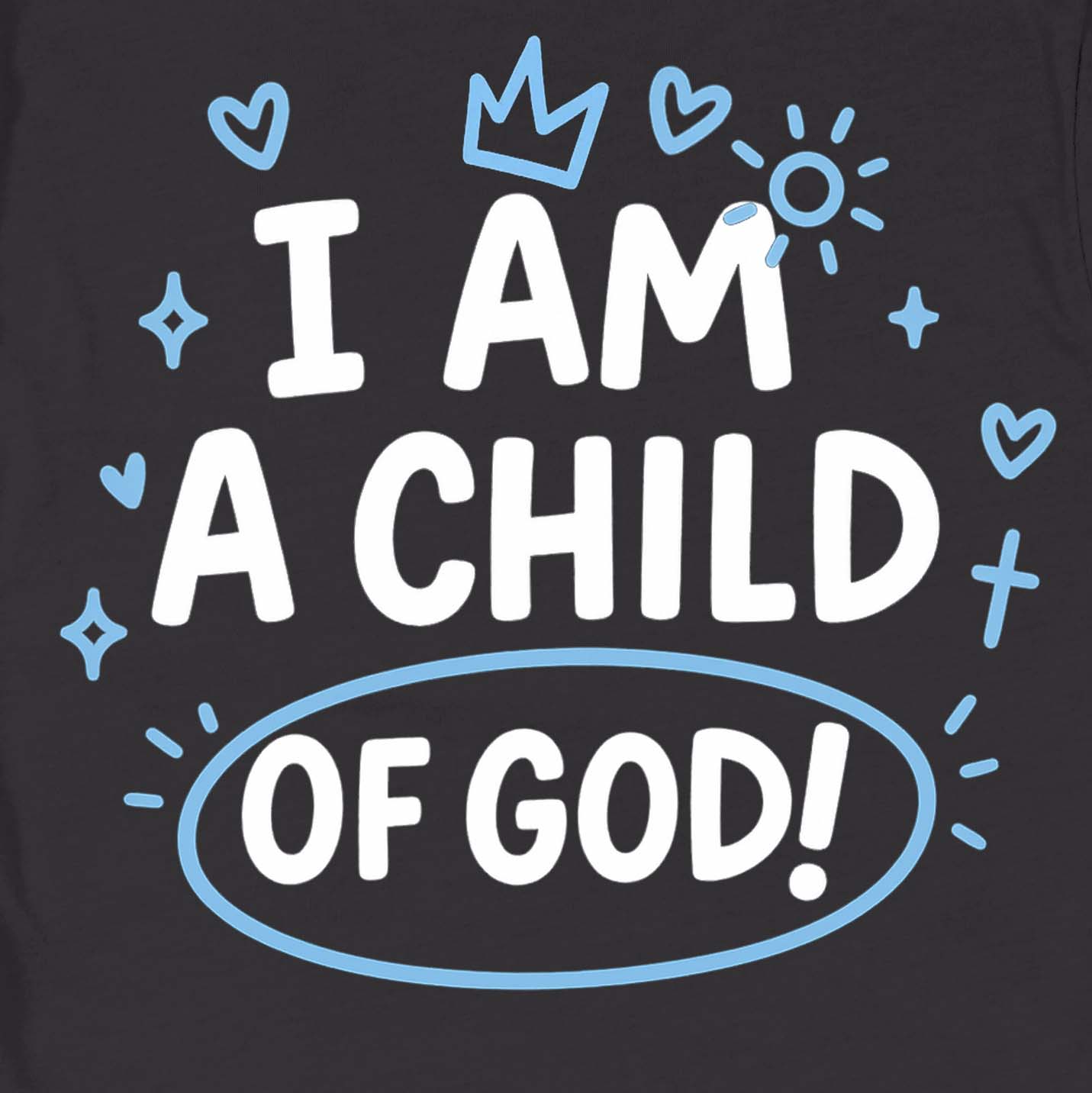 Playful doodles frame a bold declaration of identity. Wear it as a daily reminder that you’re seen, loved, and claimed by the Father.